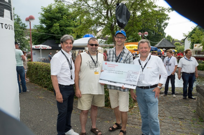 So hatte Philipp Gerick eine Mitfahrt bei Walter Röhrl ersteigert, den Erlös von 1.600 Euro erhielt das Projekt „Ein Schulhof zum Erleben, Entdecken und Bewegen“ des „Förderverein der Grundschule Daun e.V.“ Petra Schmitz als Vertreterin der Eltern und Schulleiter Christian Irle nahmen diese Unterstützung Ihrer Aktion gerne entgegen.