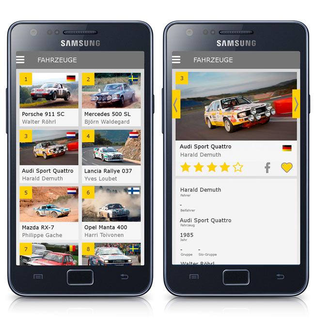 Was ist Ihr Lieblingsauto? Ist es der Donnerkeil Lancia Stratos, der revolutionäre Audi Quattro oder doch lieber der klassische Mini Cooper? Mit der kostenlosen Smartphone-App können Sie jedes Teilnehmerauto ganz einfach bewerten und so den Sieger des Eifel Rallye Festivals bestimmen.